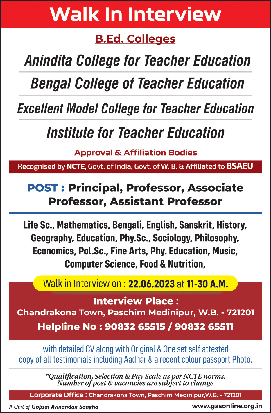 ITE, one of the best B.Ed colleges in Eastern India, located in Paschim Medinipur, West Bengal and a well sought place for the aspiring future teachers, started its journey under the umbrella of Gopsai Abhinandan Sangha in the year 2014 with a commitment to create and deliver competent teachers to the society who are humane, collaborative and multicultural in their outlook.